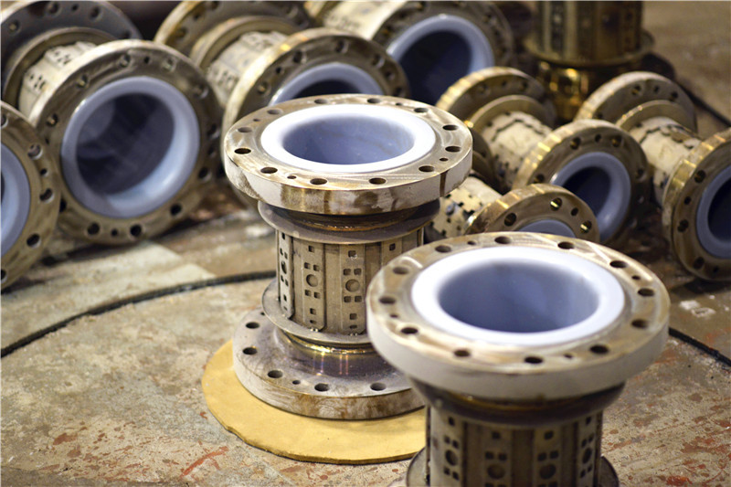 篩網(wǎng)式鋼襯四氟管線鋼斜管設(shè)有網(wǎng)孔,鋼斜管內(nèi)外壁緊密覆蓋襯四氟層,內(nèi)外壁上的四氟乙烯層通過網(wǎng)孔粘合。篩管鋼襯四氟管道主要由鋼支撐作為底模,強(qiáng)度好,不易變形和斷裂,耐腐蝕性能完全滿足生產(chǎn)工藝要求。同時(shí),它還具有重量輕、安裝維護(hù)方便、價(jià)格便宜、使用壽命長的特點(diǎn)。該金屬絲網(wǎng)包括金屬絲網(wǎng)體和焊接腳,金屬絲網(wǎng)通過焊接腳焊接在管道內(nèi)壁上固定在管道內(nèi)壁上,金屬絲網(wǎng)體與管道內(nèi)壁之間留有間隙。這種結(jié)構(gòu)的管道可以防止附著在管道內(nèi)壁上的四氟材料層在加工和使用過程中收縮變形而導(dǎo)致管道內(nèi)壁嚴(yán)重脫落。